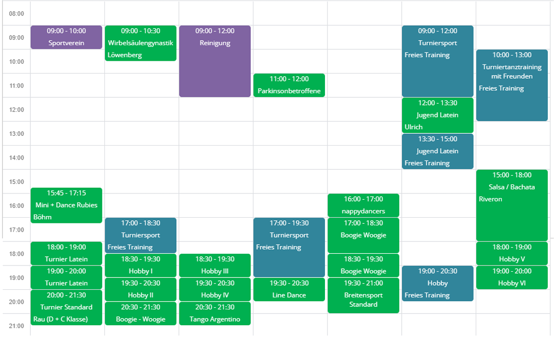 blau = freies Training // grün = Gruppentraining